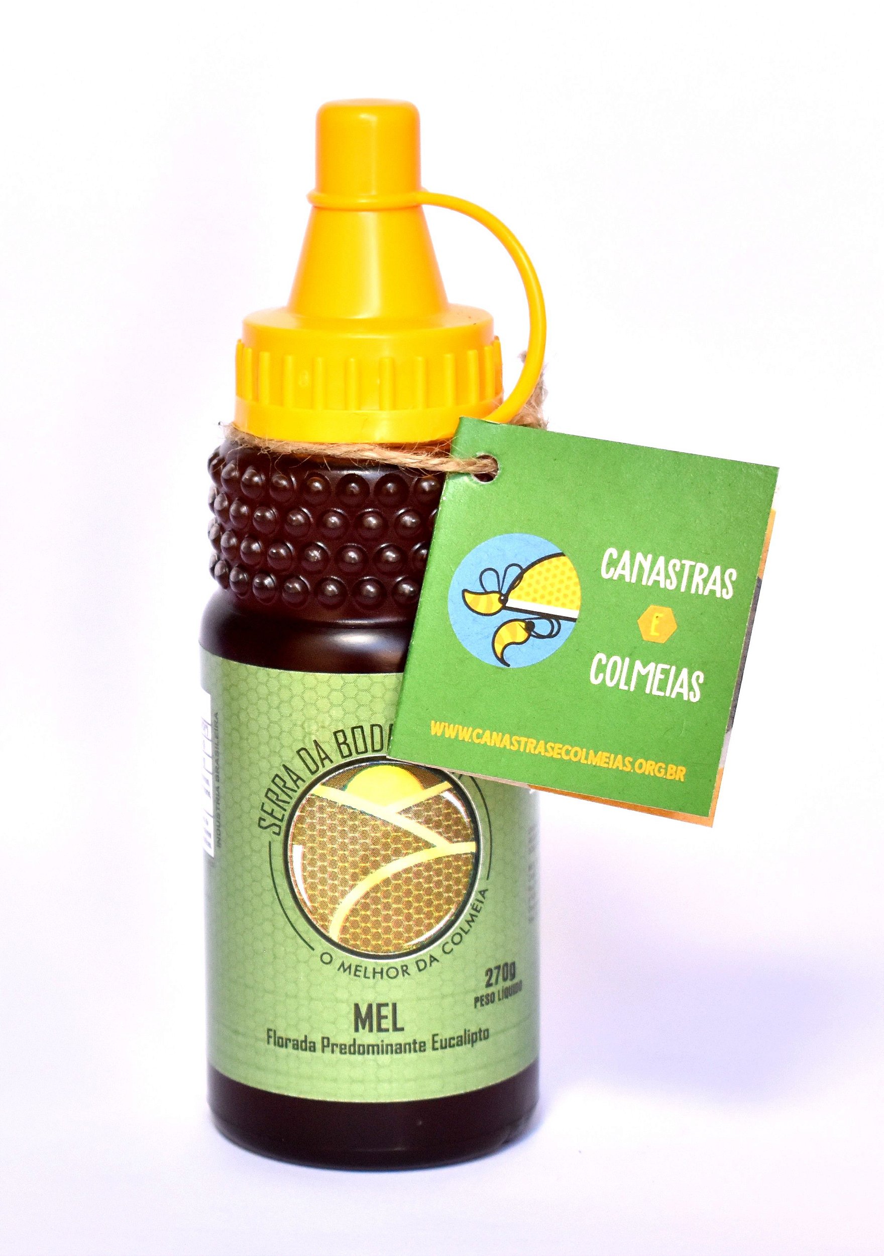 Mel de mesa, embalado em bisnaga de 1kg, 500g ou 270g, florada predominante de eucalipto.